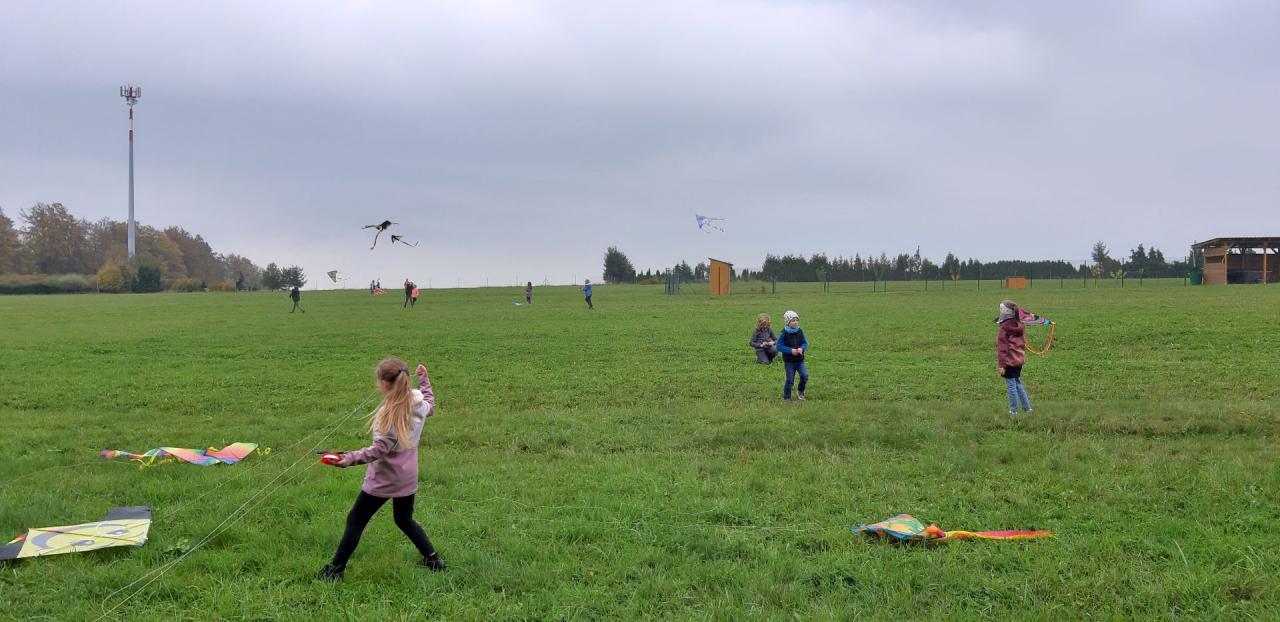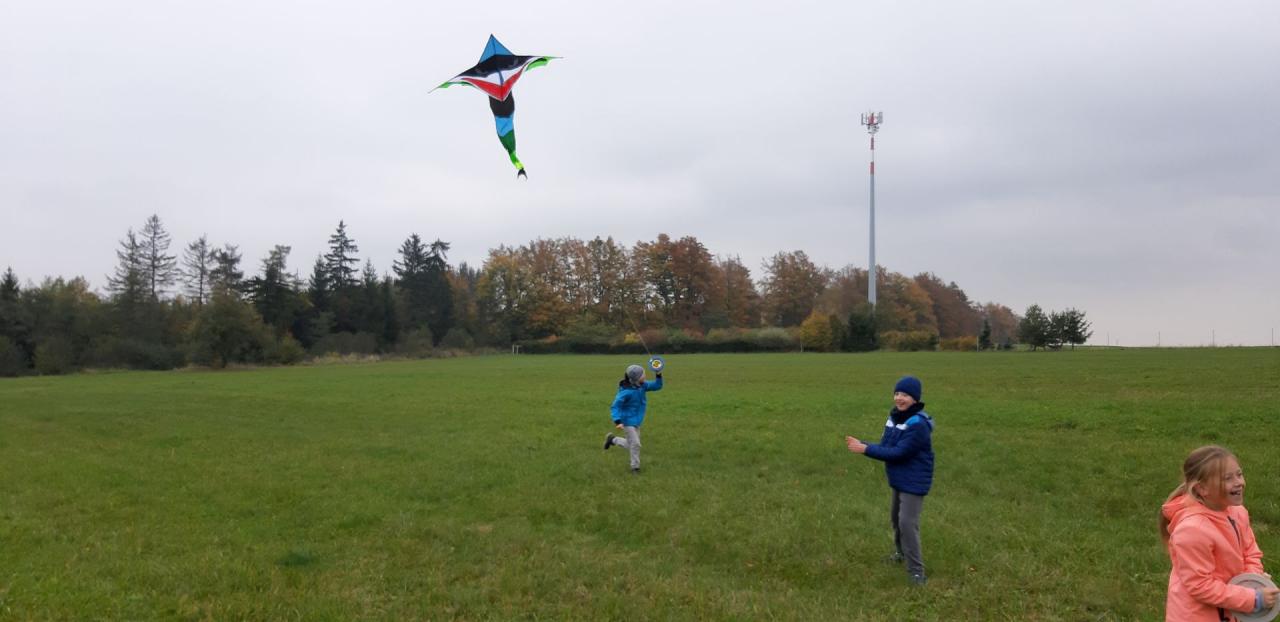 Podzim je neodmyslitelně spjat s pouštěním draků. Proto i děti ze školní družiny se vydaly ve čtvrtek 13. října na louku u školy, aby společně vypustily své krásné draky.