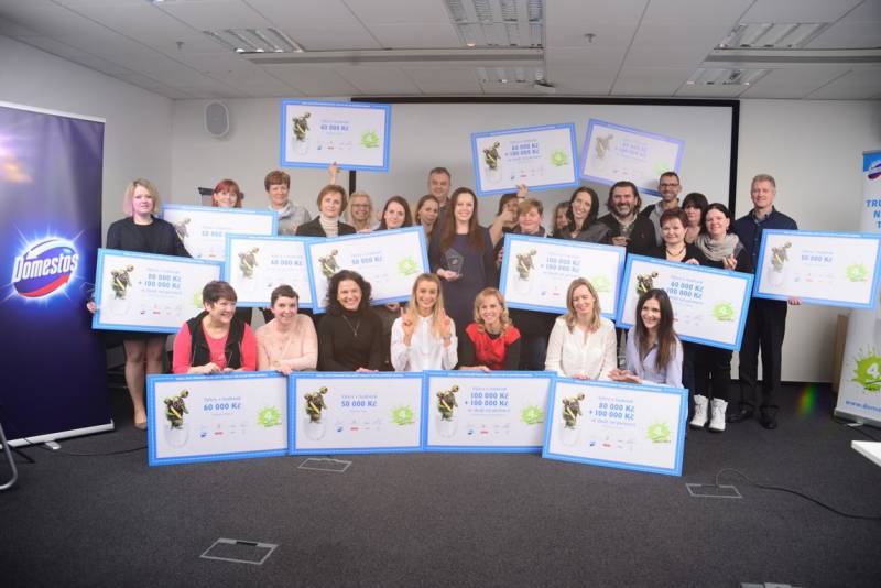 Družina soutěžila s Domestosem Jako v loňském roce, tak i letos se naše obě oddělení ŠD zúčastnily soutěže Domestos pro školy. Cílem soutěže bylo zlepšit hygienické návyky našich dětí. Motivací pro ně byla finanční odměna, která by se využila na rekonstrukci toalet. V průběhu soutěže měly děti plnit čtyři zadané aktivity. Výsledkem byl vždy produkt, který byl zdokumentován a následně prezentován na webových stránkách Domestos pro školy. Tam pro naše děti mohlo být také hlasováno. Body se daly získat i sbíráním účtenek za nákup produktů značky Domestos. Děti se do soutěže zapojily s velkým nadšením. Umístili jsme se na krásném 2. místě a získali finanční prostředky v hodnotě 180.000 Kč na rekonstrukci toalet, která proběhne o hlavních prázdninách. Předání cen se uskutečnilo v Praze a zúčastnili se ho členové vedení naší školy. Touto cestou bychom chtěli poděkovat i všem rodinným příslušníkům, kteří se do soutěže také zapojili a poctivě pro nás hlasovali. Budeme se těšit na další spolupráci při příštím ročníku soutěže. Mgr. Martina Moučková a Kateřina Mejtská