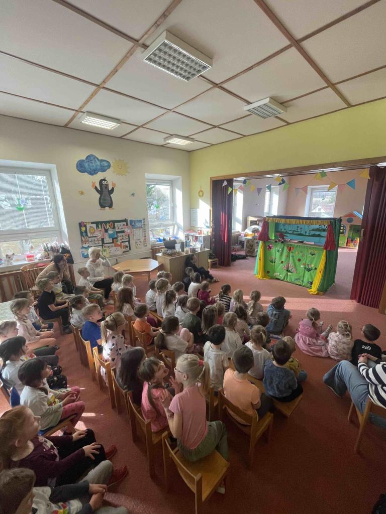 Ve čtvrtek 12. 3. 2026 jsme jeli na výlet do MŠ Kořenec. Čekalo na děti divadelní představení s pohádkou Jaro s čápem.