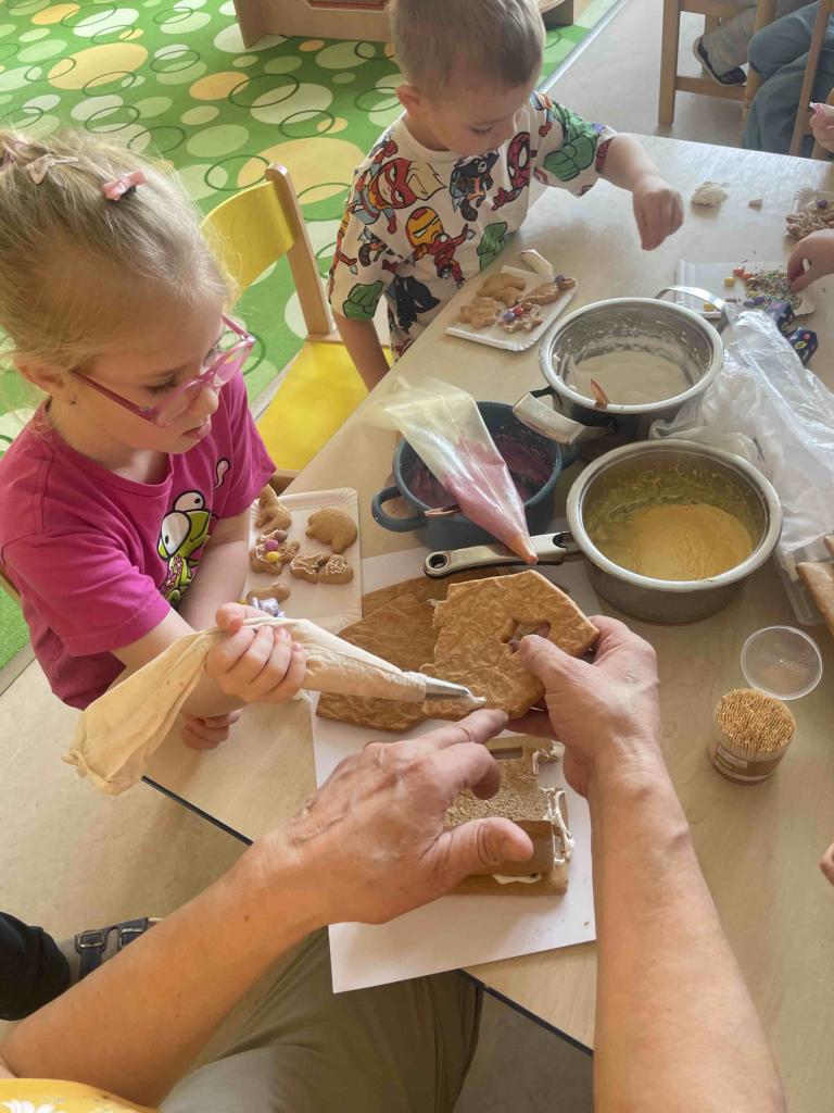 Děti se dozvěděly spoustu zajímavostí o včelách a jejich životě. Nechyběla ani sladká tečka na závěr. Každý si mohl ozdobit perníčky podle vlastní fantazie a společně si děti postavily i perníkovou chaloupku. Mockrát děkujeme manželům Janečkovým za krásný program, milou atmosféru a krásně strávený čas.