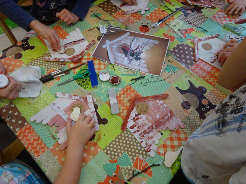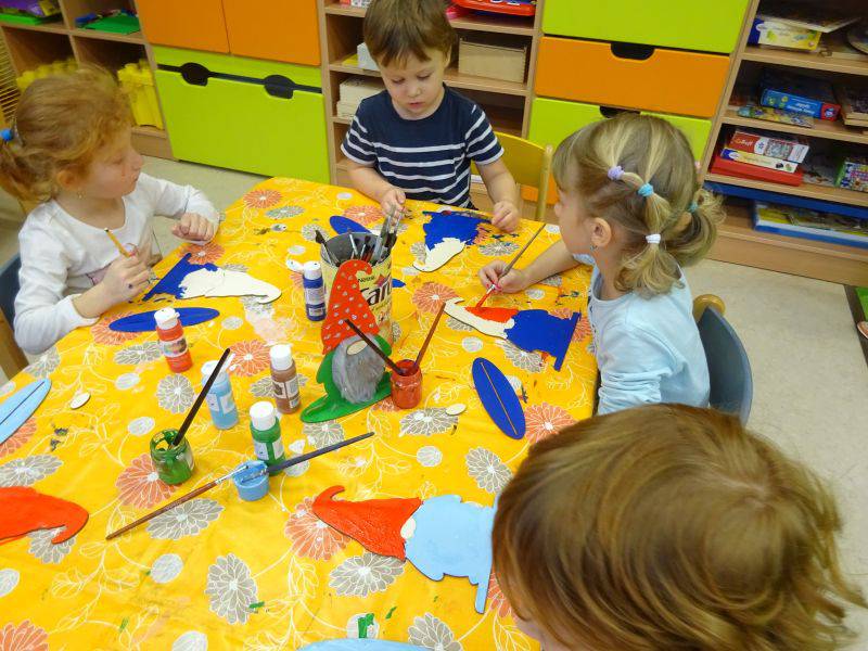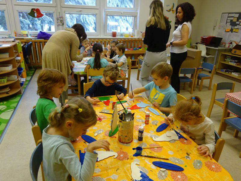 Postupně si na stanovištích za pomocí dospělých vyrobily vánočního skřítka z dřevěné překližky a krmítko pro ptáčky ze špachtlí. Pracovali jsme s akrylovými a glitrovými barvami, lepidlem, přírodním materiálem a různými dekoračními prvky.