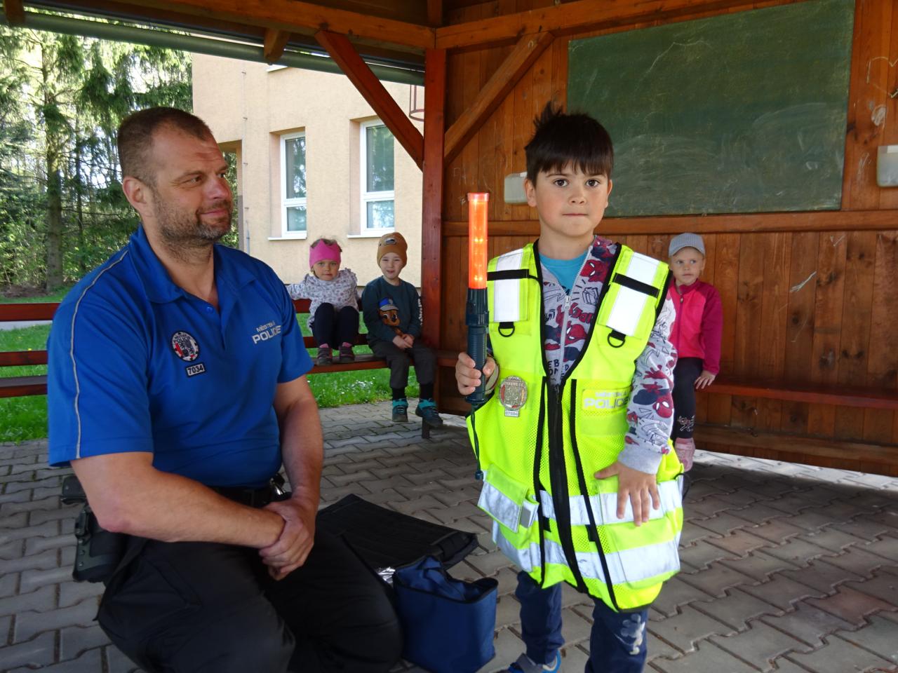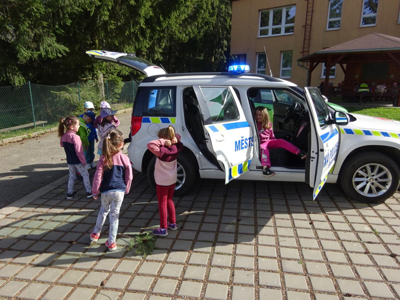 V úterý 9.4. naši MŠ navštívili zástupci Městské policie z Boskovic. Kromě informací o jejich práci si děti také prohlédly policejní auto a potřebné vybavení a ještě si odnesly domů drobné dárečky.