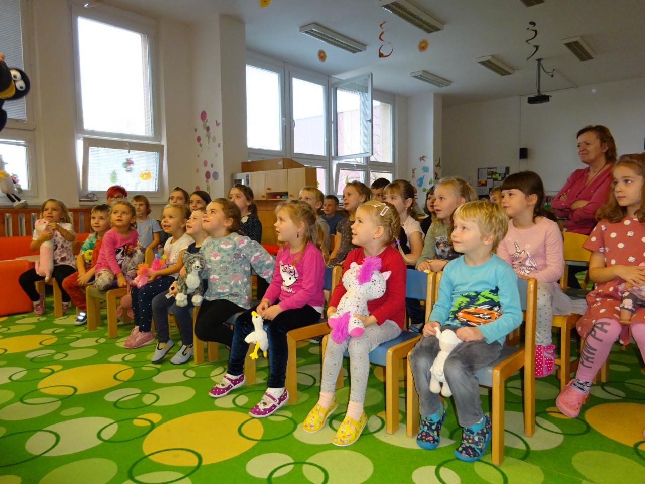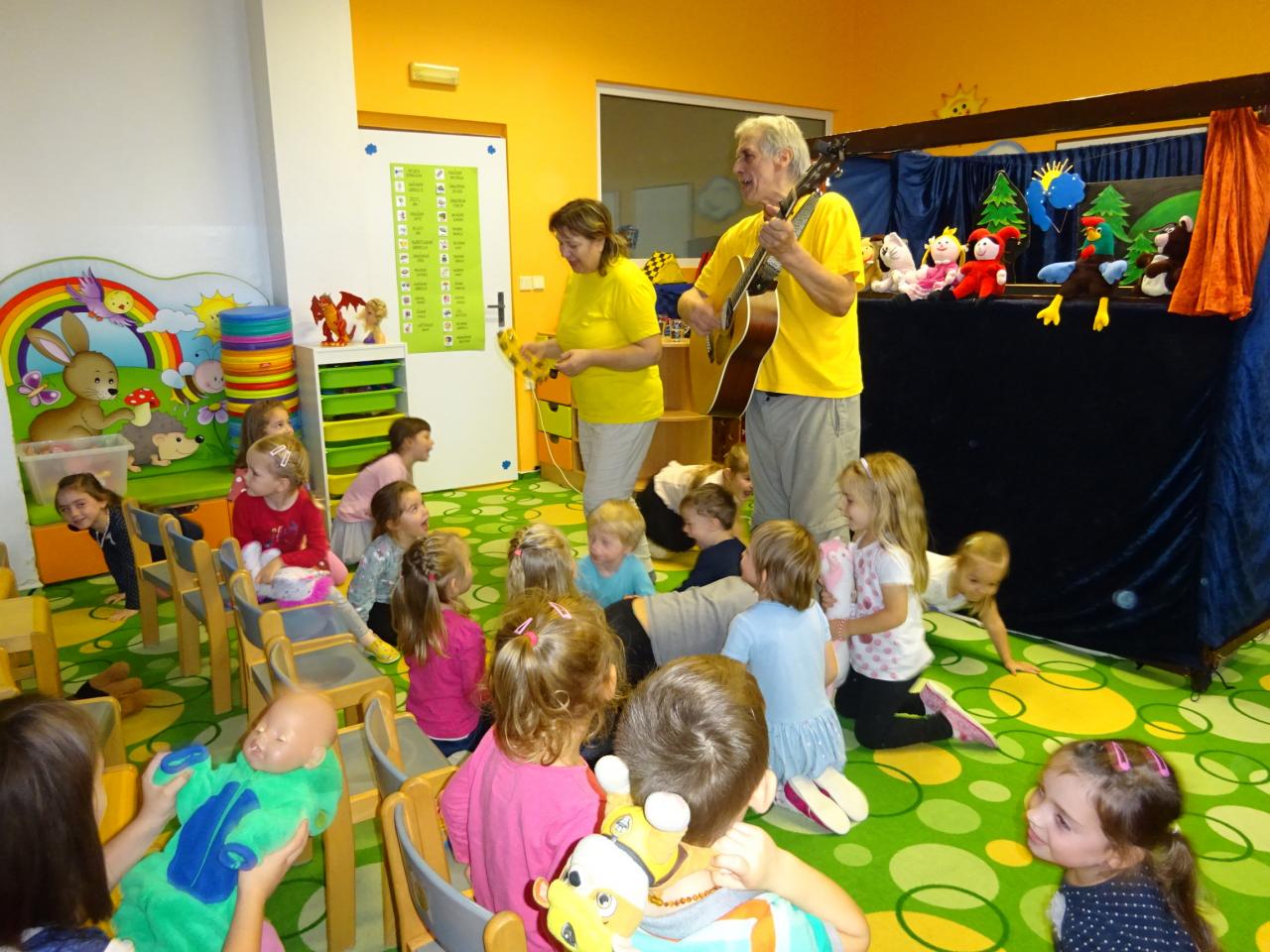 V pátek 10. 11. 2023 nás opět navštívili manželé Janečkovi z Prostějova. Tentokrát dětem zahráli pohádky ,,Šípková Růženka´´, ,,Jak pejsek s kočičkou myli podlahu“, ,,O kohoutkovi a slepičce“.
