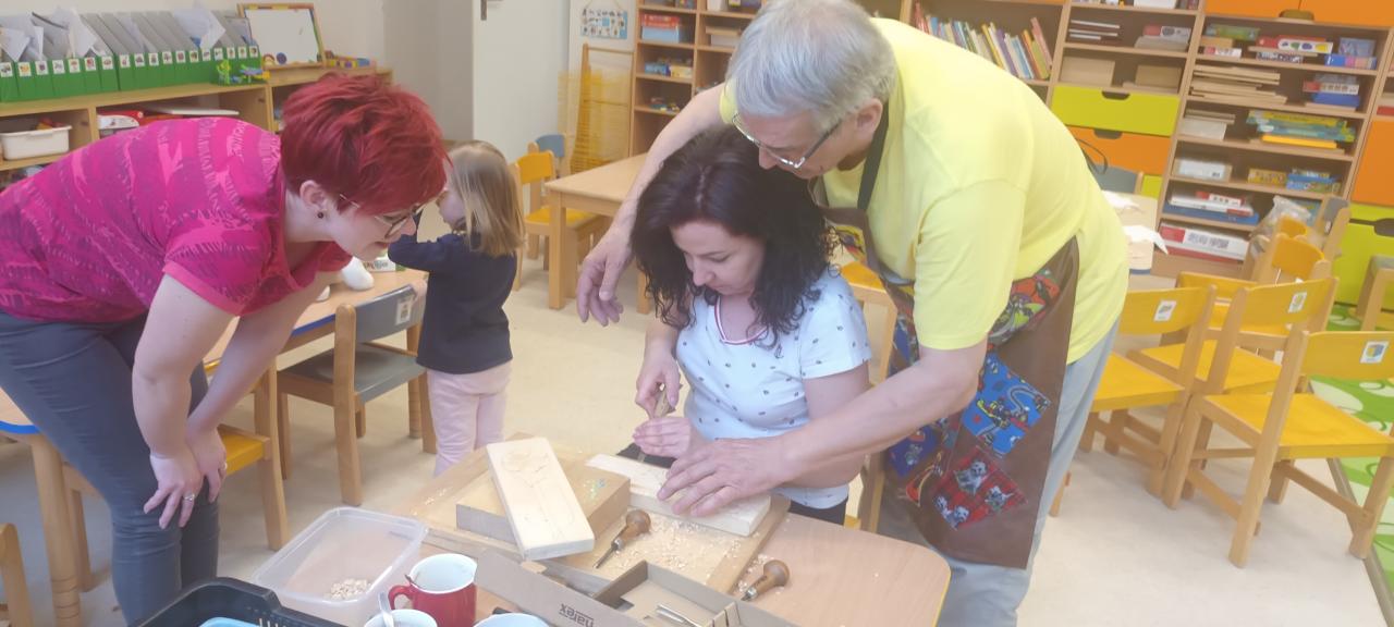 Nejprve děti viděly tři zdařilé pohádky, do jejichž děje byly otázkami herců neustále zapojovány. Dále měly možnost vyzkoušet si práci s dlátem, osahat si různé druhy dřeva, vyzkoušet si pohyb loutky, vše si důkladně prohlédnout a zeptat se na věci, které je zajímaly.