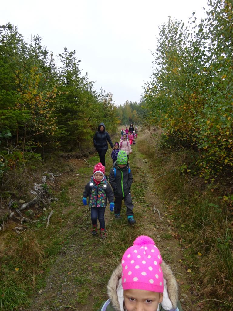 Příznivé počasí, které panuje i v říjnu, nám umožnilo uskutečnit s dětmi turistickou vycházku směrem na Kořenec.