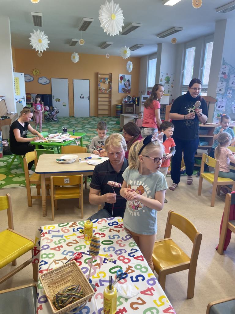 V pondělí 14. 4. 2025 odpoledne jsme do naší MŠ pozvali rodiče, abychom strávili příjemné předvelikonoční odpoledne a společně si vyrobili krásné velikonoční dekorace.