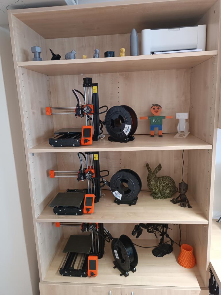 Učebnu se podařilo uspořádat tak, aby zde zůstal prostor pro velký centrální stůl, který je ideální pro skupinové aktivity. Součástí učebny je také nová skříň s poličkami pro uložení 3D tiskáren a nabíjecí stanice pro robotické stavebnice.
