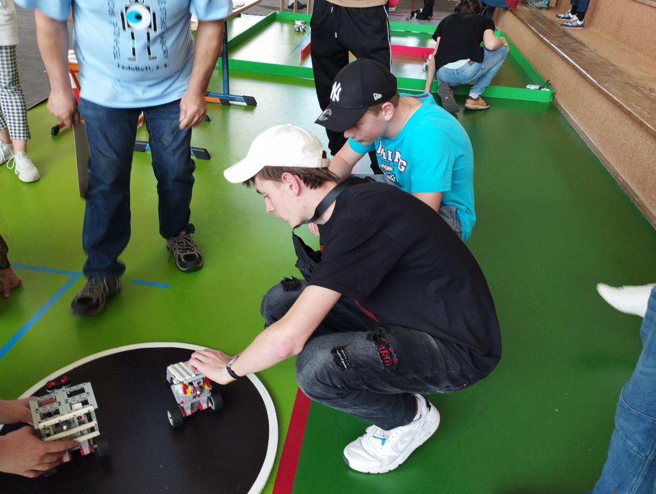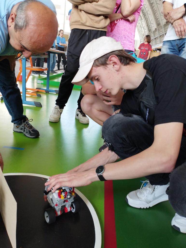 Michal Přikryl a Václav Kolář složili robota na disciplínu minisumo, který mohl mít rozměry maximálně 10x10 cm, což je na konstrukci náročné a jako škola jsme toto kritérium splnili jediní. Po duelu, ve kterém se roboti snaží navzájem vytlačit z ringu, Václav získal první místo a Michal druhé místo. Podobně kuriózní kousek předvedl Tomáš Čížek, který svého robota přihlásil na disciplínu robokáry ve chvíli, kdy disciplína již začala. Neměl přitom vhodně vytvořenou konstrukci, ani vytvořený kód a dokonce ani žádné zkušenosti s touto disciplínou. Přesto Tomáš neuvěřitelně rychle dokázal svého robota upravit a naprogramovat, takže už hned při prvním rozjezdu získal s robotem několik bodů, čímž nás všechny překvapil.