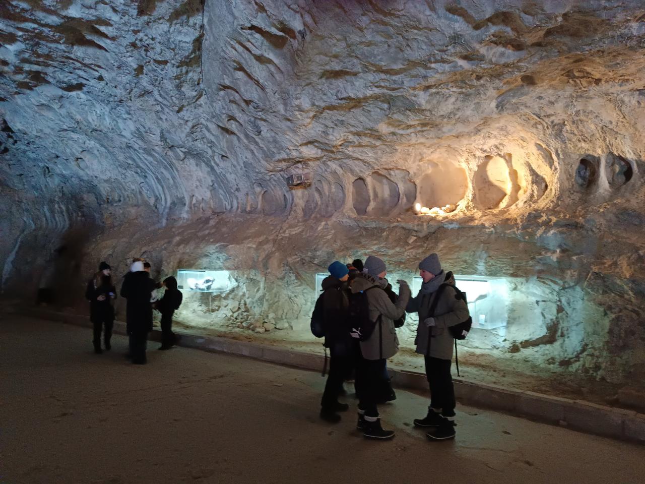 Žáci se prošli po trase zimní prohlídky vybaveni čelovkami, díky nimž si mohli vychutnat dobrodružnou atmosféru podzemí a lépe si představit, jak jeskyně objevovali jejich první průzkumníci. Během prohlídky se seznámili se vznikem krasových jevů, podzemními chodbami i mohutnými dómy, které patří k největším v České republice.