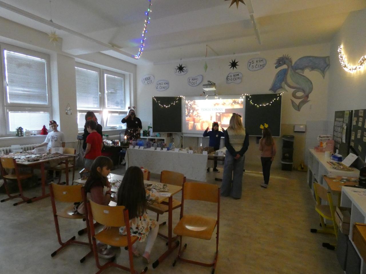 Program zahájilo zpívání žáků u vánočního stromku, které navodilo slavnostní náladu a potěšilo všechny přítomné. Následně si návštěvníci mohli projít jednotlivá stanoviště jarmarku, kde žáci nabízeli vlastnoručně vyrobené výrobky. K vidění a zakoupení byly například vánoční dekorace a ozdoby, vykrajovátka, přívěsky, lampy či voňavé sušenky.