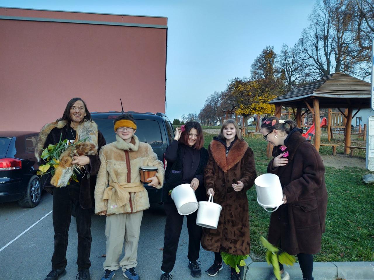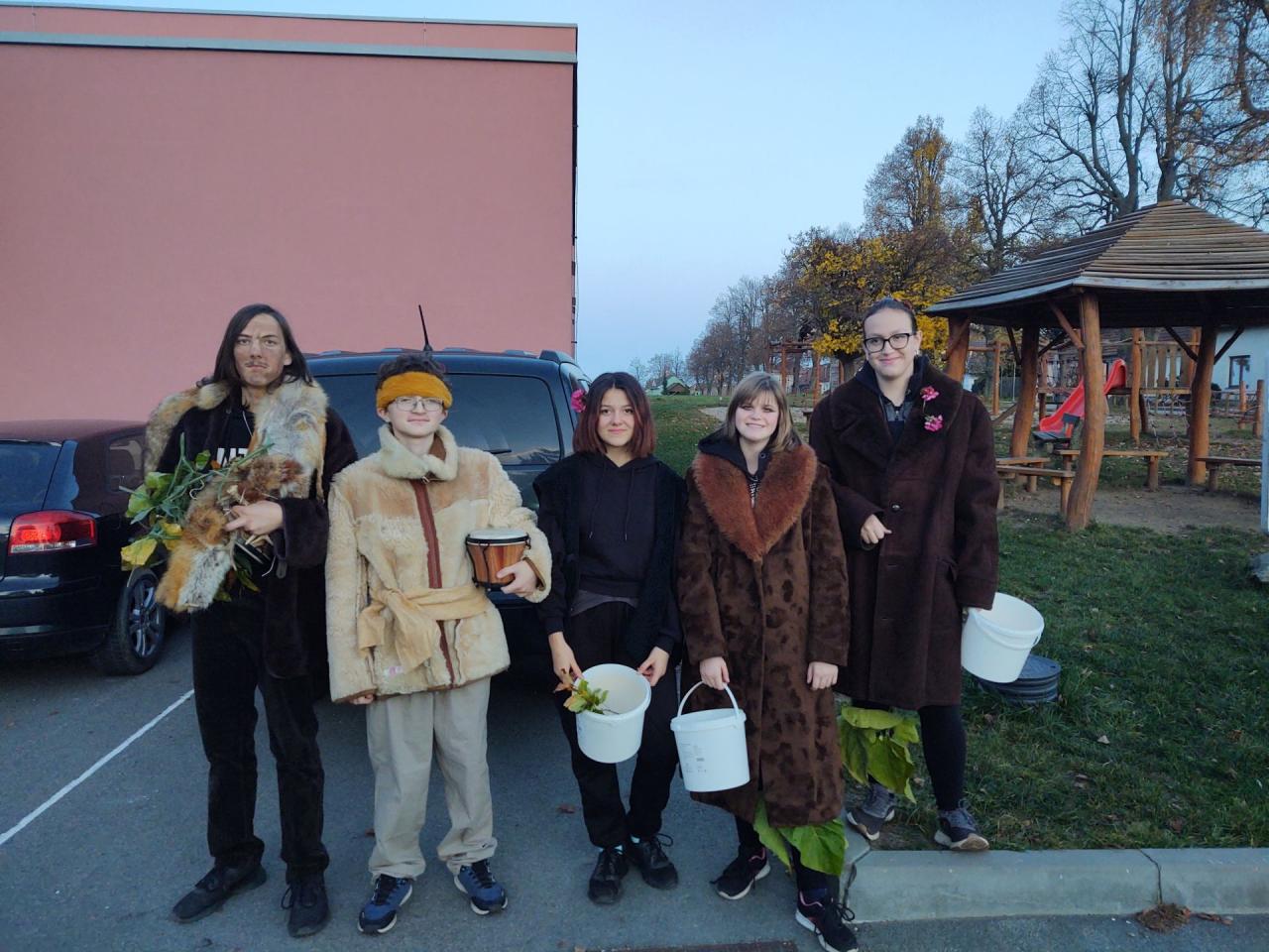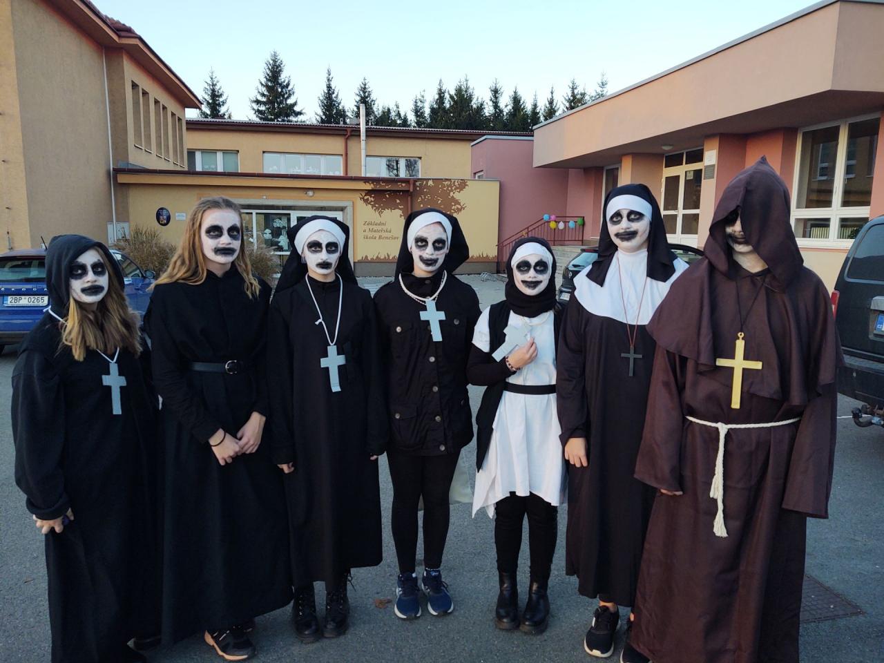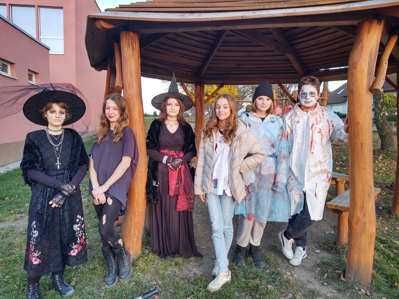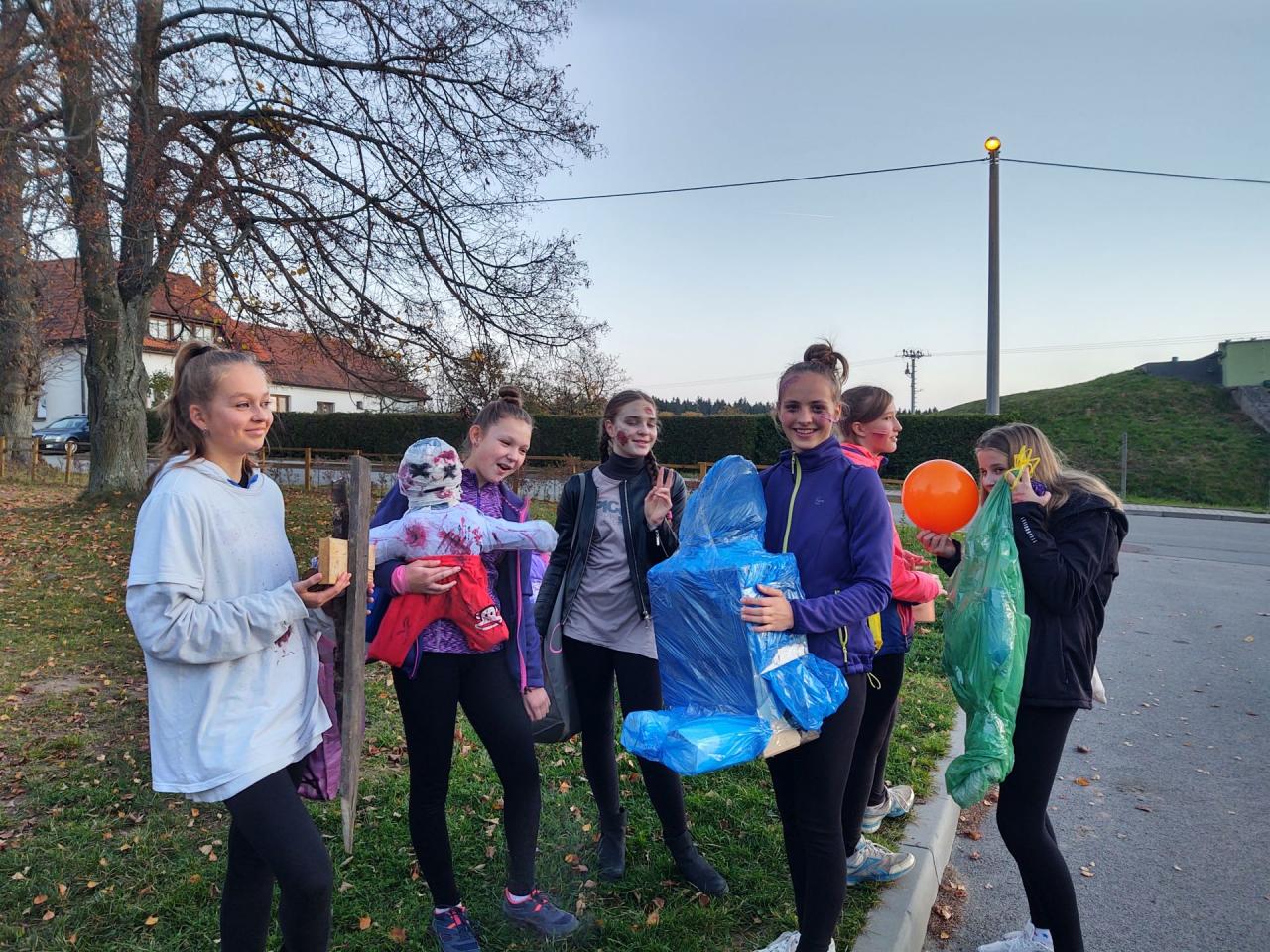 Žáci druhého stupně a učitelé školy připravili pro mladší děti dušičkový lampionový průvod obcí.