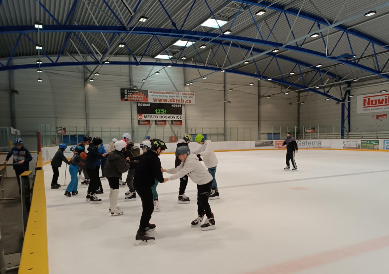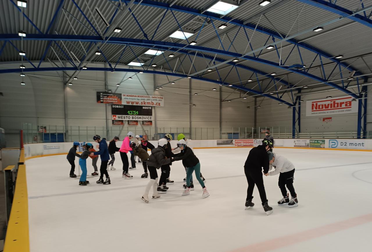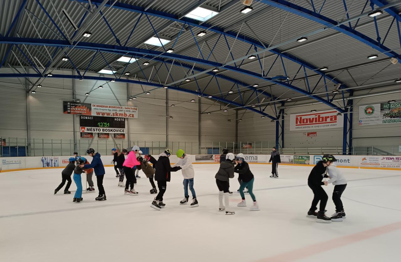 Žáci druhého stupně ZŠ se zúčastnili ve středu 13. 3. bruslení na zimním stadionu v Boskovicích.