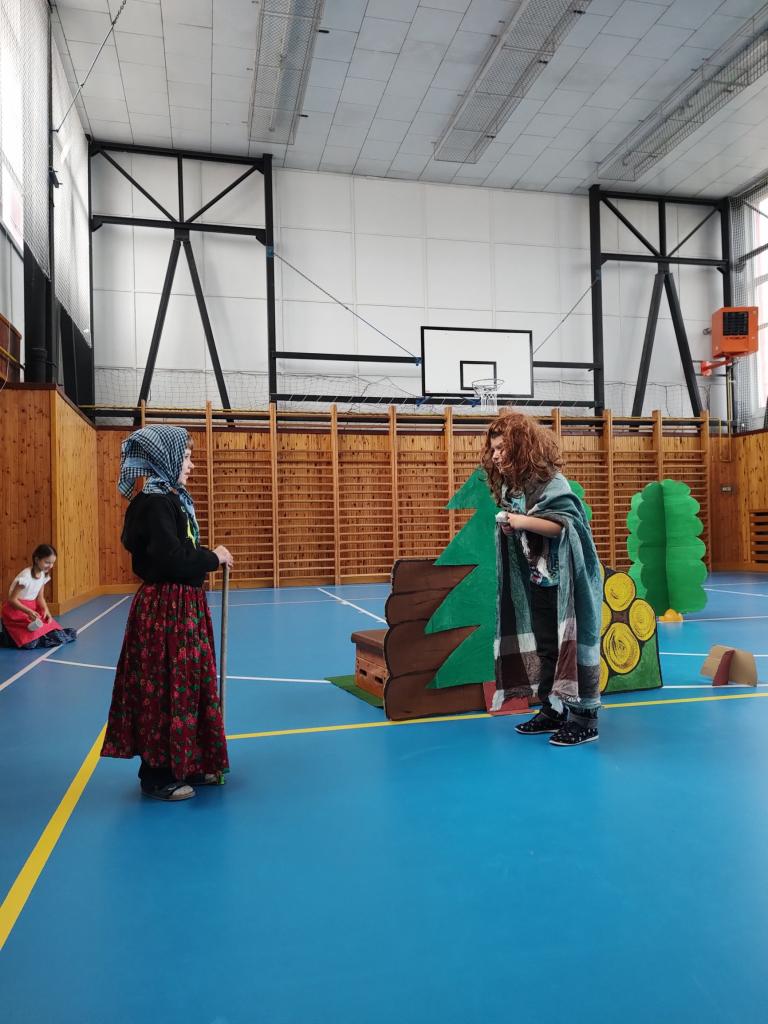 Žáci 2. ročníku nacvičili pohádku O perníkové chaloupce.