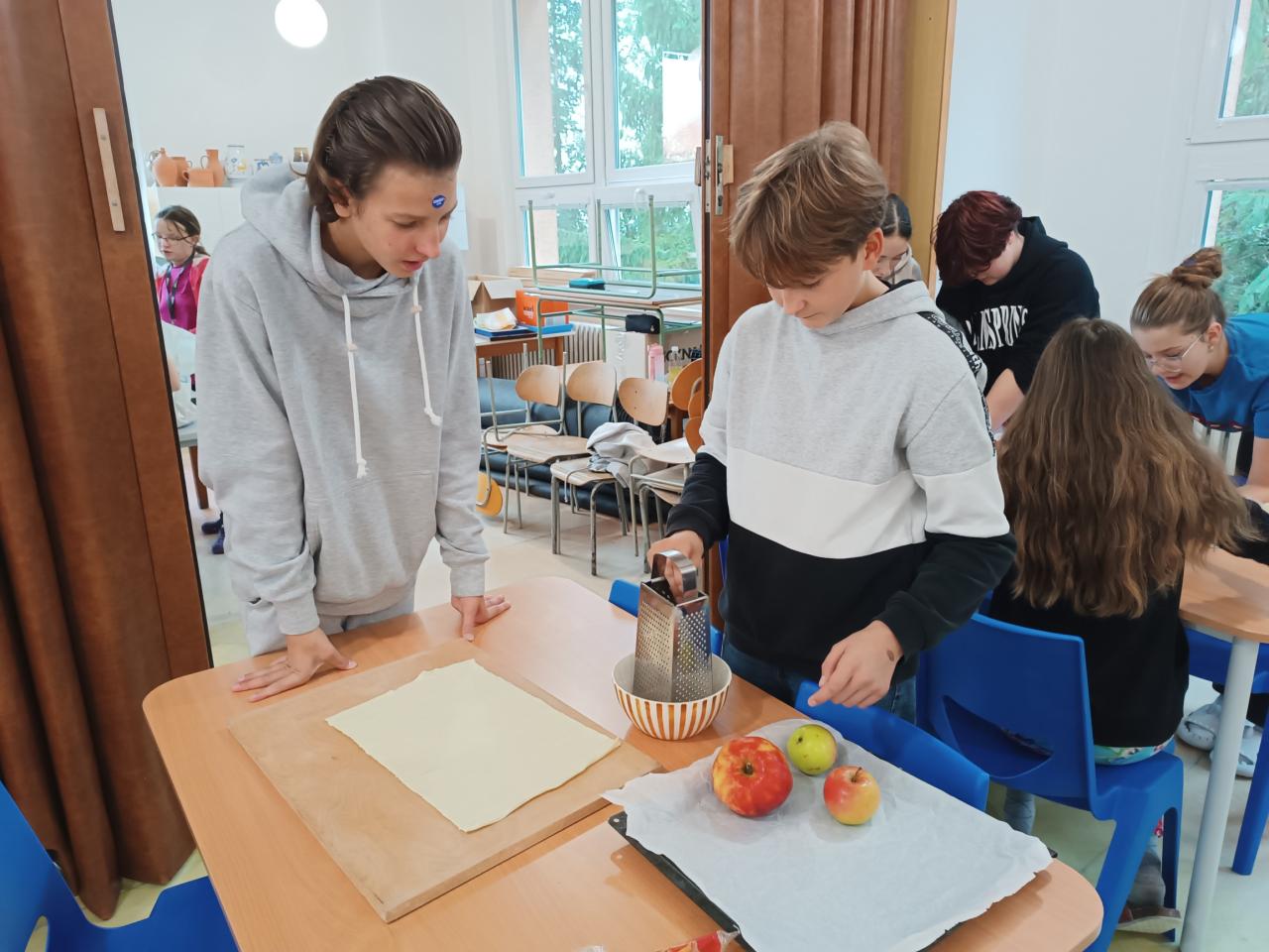 Osmáci si v hodině pracovních činností připravili několik jablečných dezertů.
