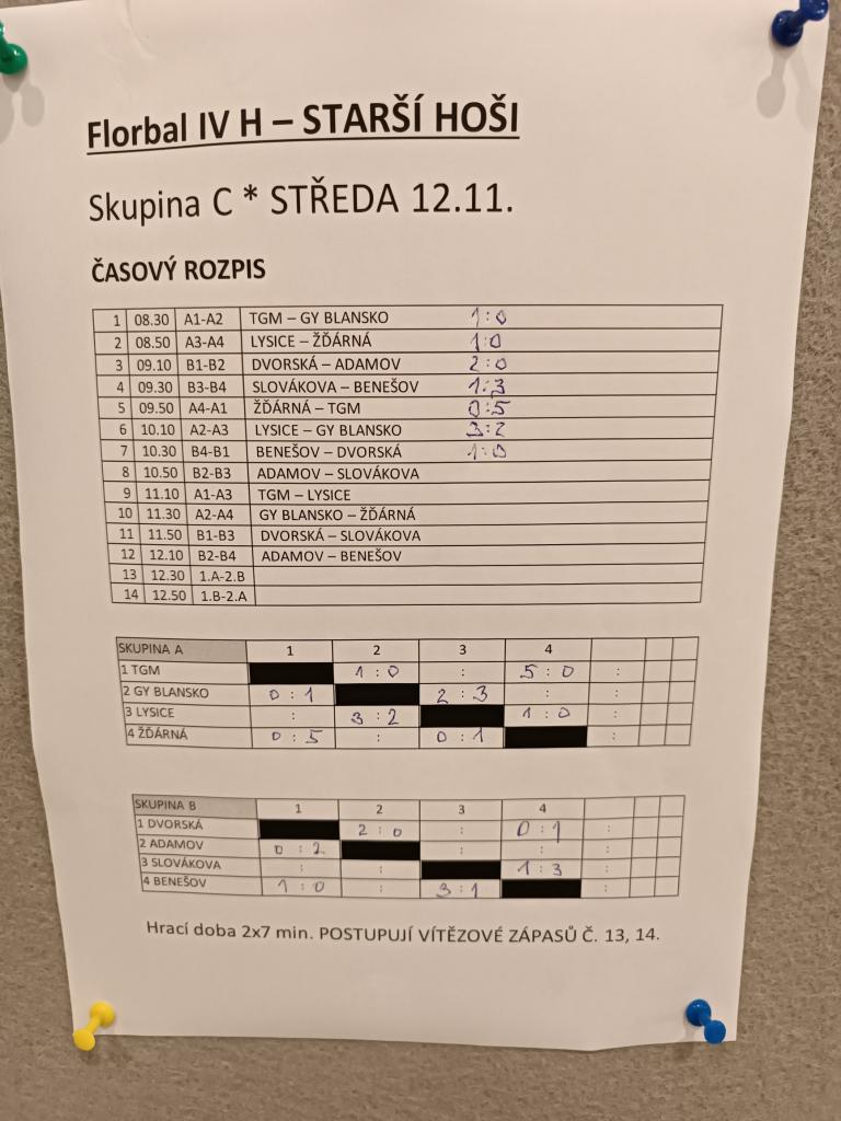 V úterý 12. listopadu se starší žáci druhého stupně ZŠ Benešov zúčastnili florbalového turnaje v Blansku.