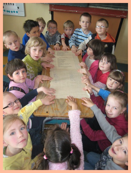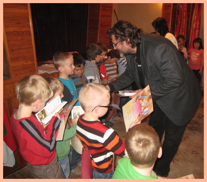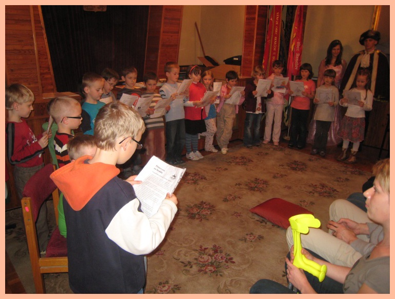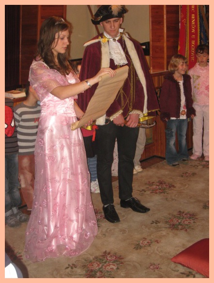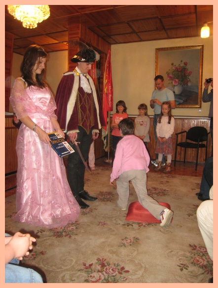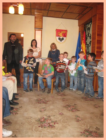 Protože vše pro nás bylo letos poprvé, o to větší bylo očekávání a napětí, jak to všechno dopadne. Už odpoledne bylo velmi slavnostní, protože jsme pasovali našich 19 prvňáčků na čtenáře v obřadní síni benešovského obecního úřadu. Po přečtení pohádky O princezně na hrášku a splnění čtenářského slibu je vyslanci z pohádkové říše princ a princezna pasovali na čtenáře. Svůj slib museli také stvrdit podpisem na pergamen. Odměnou jim byl pamětní list od výtvarníka pana Fixla a spoustu dalších dárečků, včetně památné pohlednice.