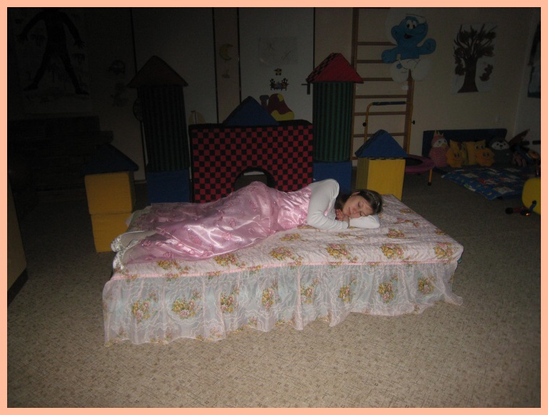 Děti se probouzely s nejistotou a otázkami:,,Spala ta princezna opravdu s námi ve škole?‘‘ A spala. Našli jsme ji až v přístavbě MŠ podle poztrácených tenisových míčků (přerostlých hrášků). Děti přistupovaly ke spící princezně se zatajeným dechem. A co byste řekli, že měla pod matrací? No přece přerostlý hrášek. Princezna dala vykuleným holkám a klukům po koblížku a honem do pohádky. A děti zase ke svým rodičům. Však si měli o čem povídat. Doufám, že budou na tuto noc dlouho vzpomínat. No a já taky. Mám super pocit, že jsem do toho šla a už budu přemýšlet, co příští rok.