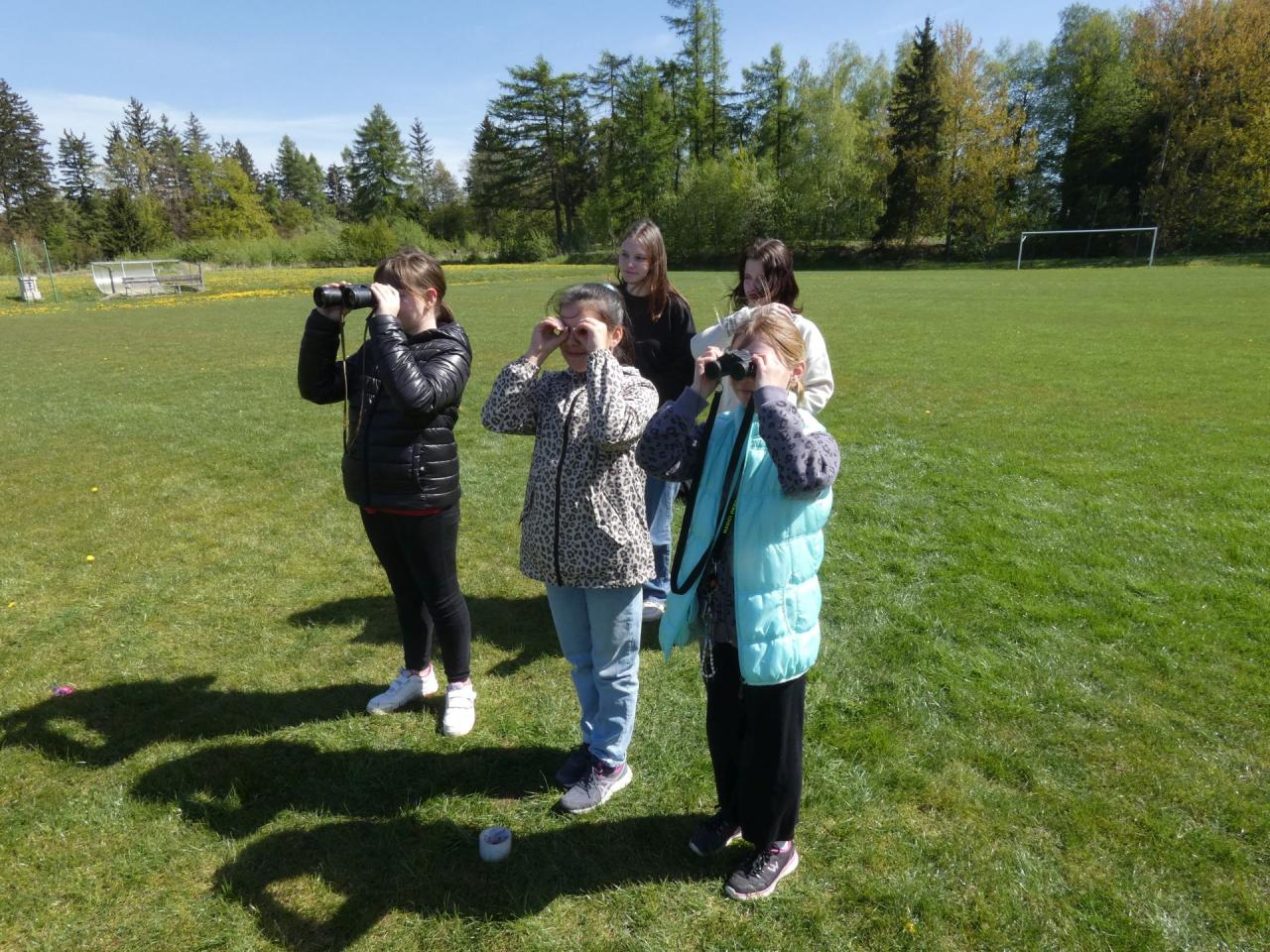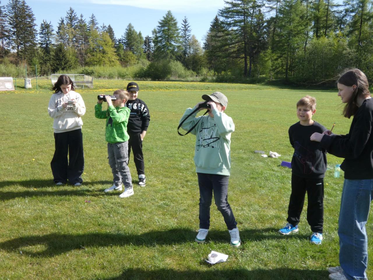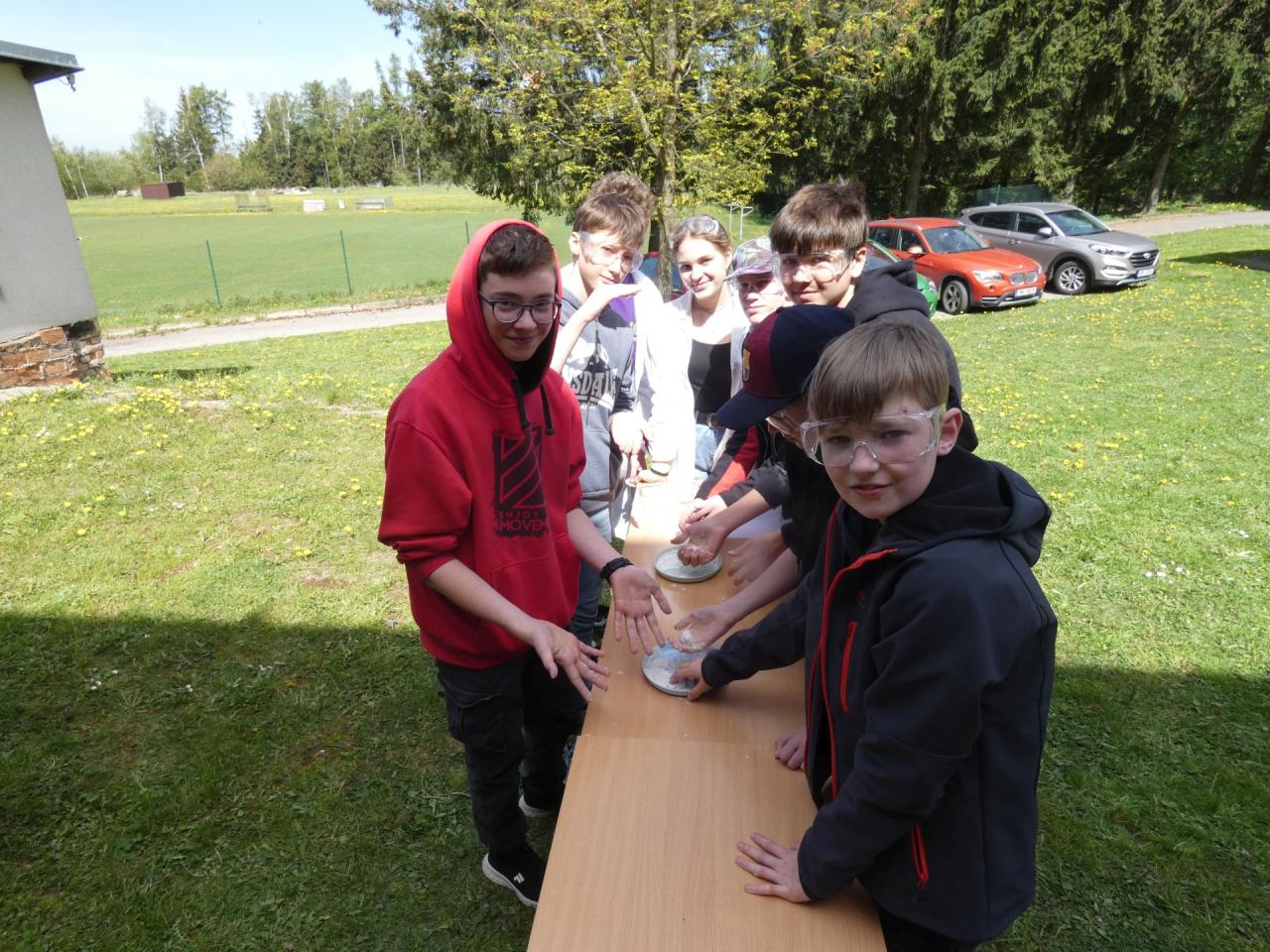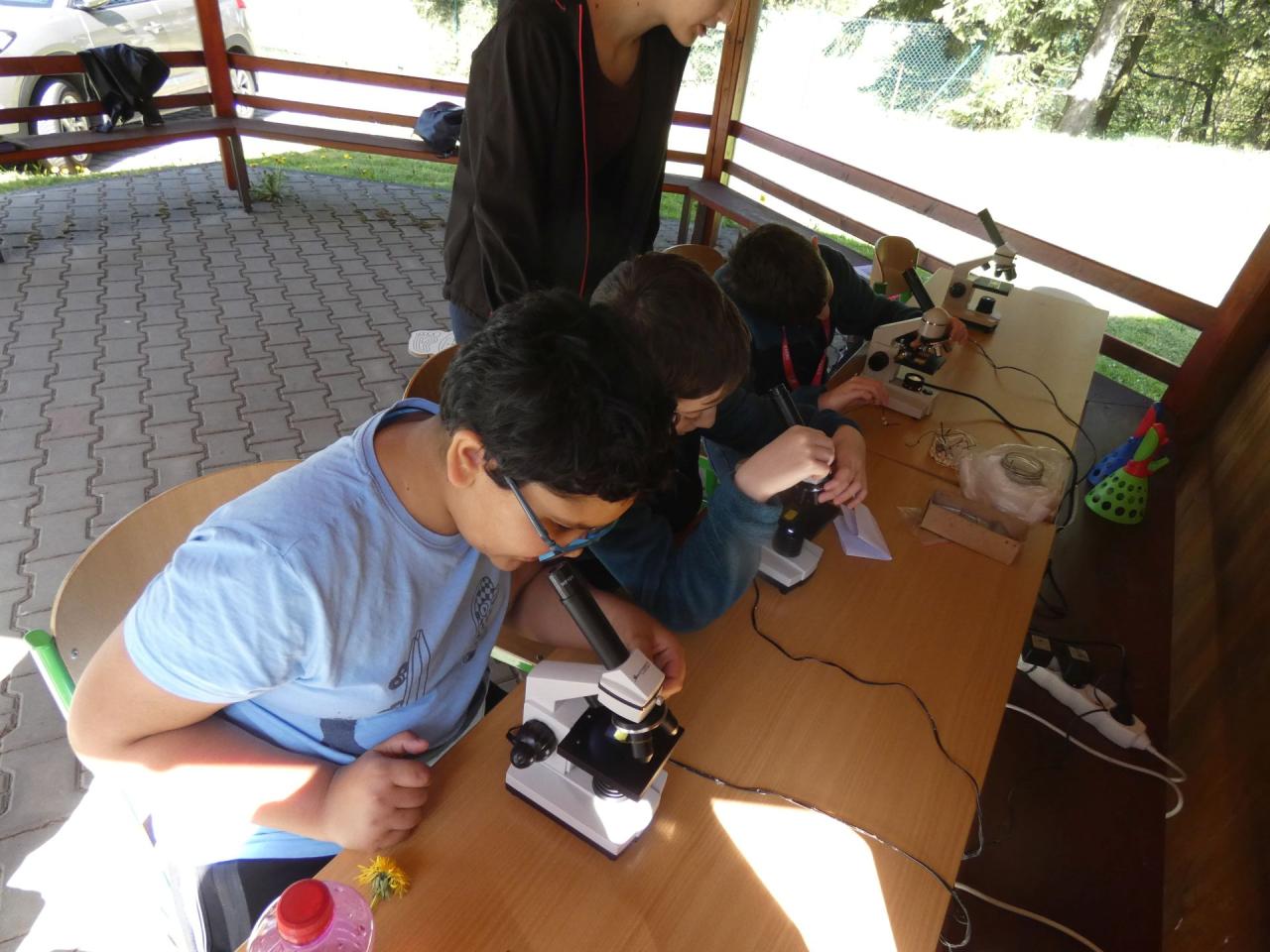 Deváťáci si pro ostatní žáky nachystali 8 venkovních stanovišť, která se orientovala na různé způsoby pozorování přírody. Děti si tak mohly vyzkoušet práci s optickými přístroji - mikroskopem, lupou a dalekohledem. Na své oči se spoléhaly při určování stop a třídění odpadu. Další smysly žáci zapojili při rozeznávání zvuků zvířat a přípravě jednoduchých chemických pokusů.