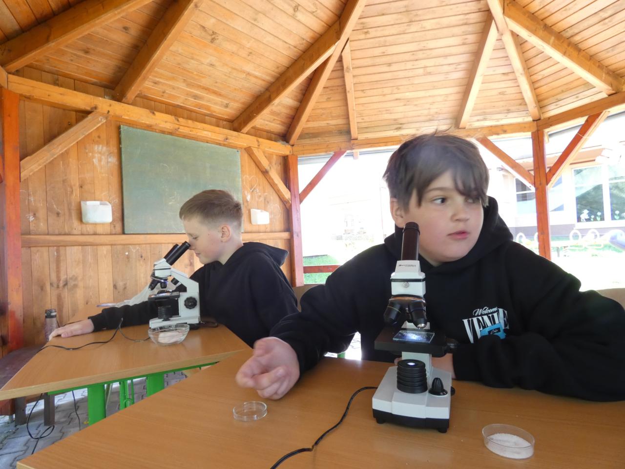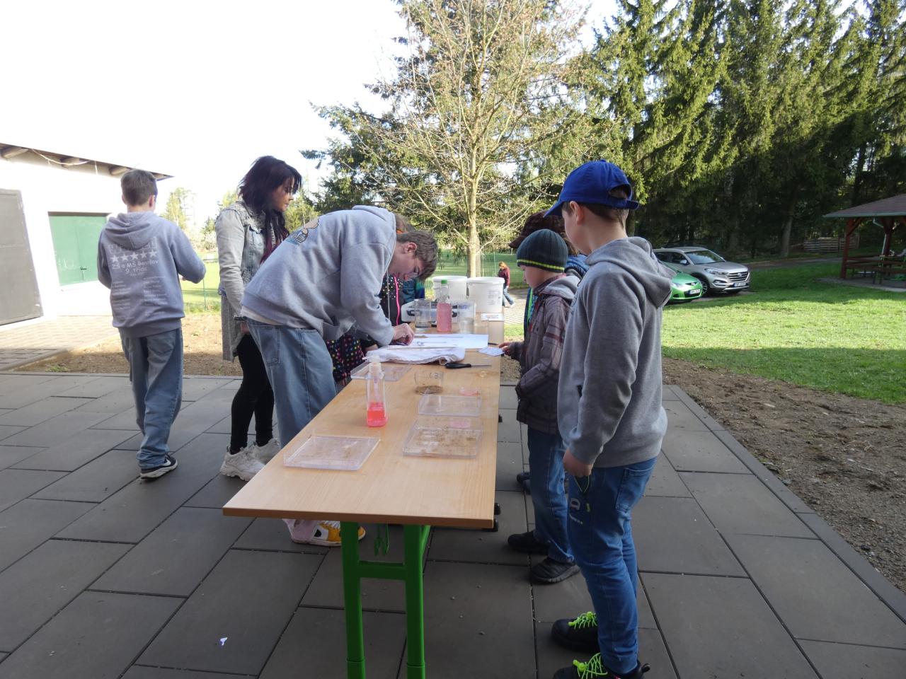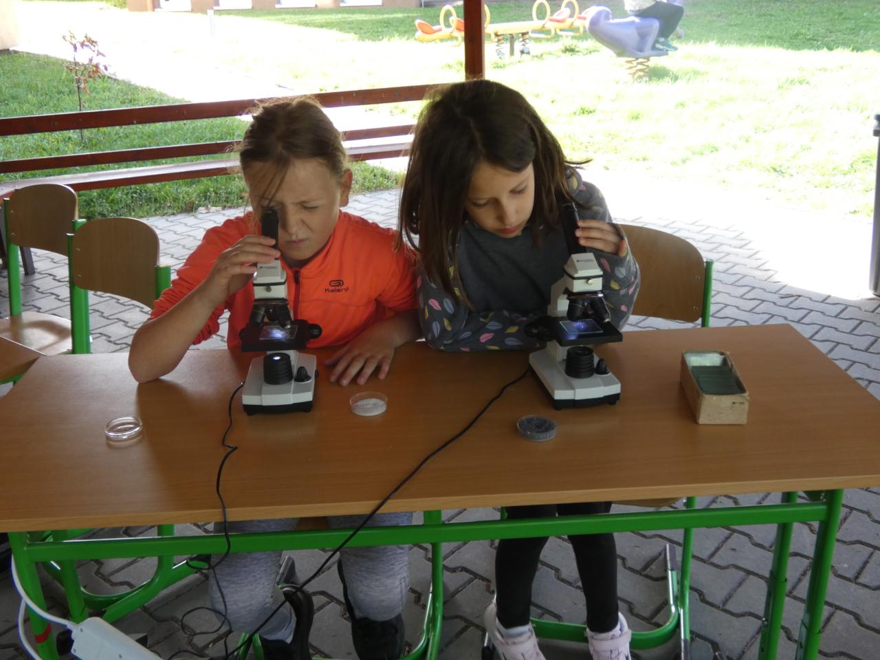 Děti zkoumaly svět pod mikroskopem, zaběhaly si při třídění odpadu, vyzkoušely si také jednoduchý pokus s povrchovým napětím vody, hrály si s magnety a přiřazovaly různé přírodniny k obrázkům. Nechybělo ani dobrodružné "lovení" bezobratlých v trávě.