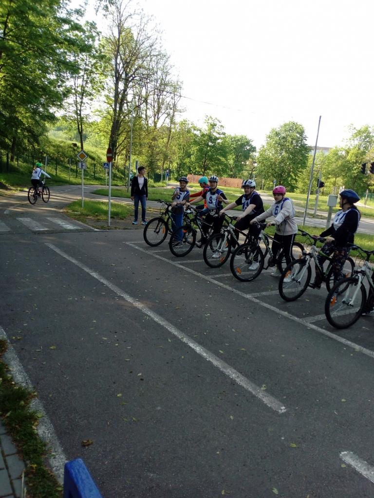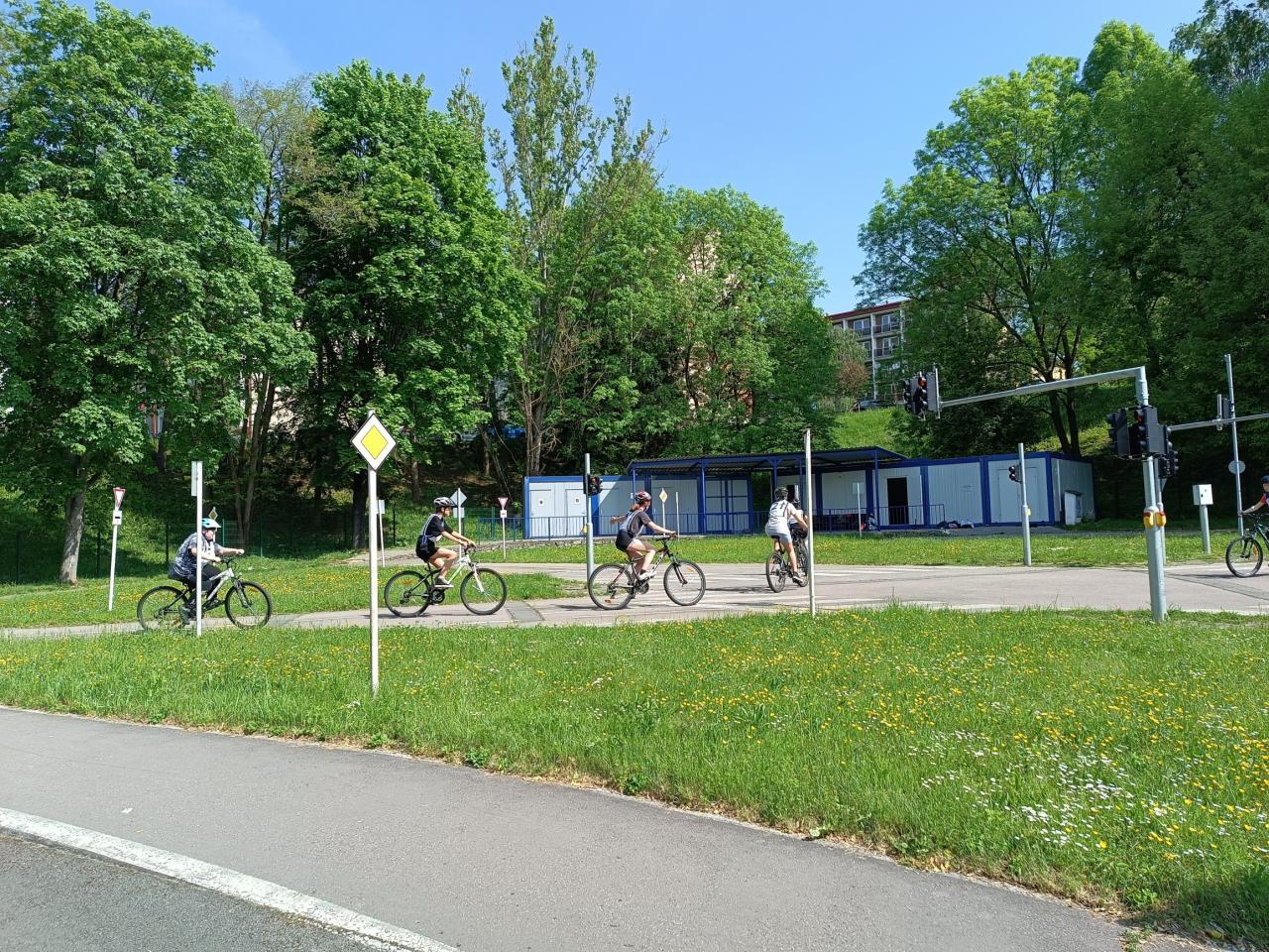 Praktická část proběhla na dopravním hřišti, kde žáci pod dohledem hodnotícího „komisaře“ předvedli jízdu dle pravidel silničního provozu.