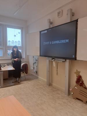 V úterý 27. ledna 2026 se žáci 7. - 9. ročníku zúčastnili preventivního programu Život s gamblerem, který vedla spisovatelka a publicistka Martina Bittnerová. Program byl zaměřen na problematiku hazardního hraní a jeho dopadů na jednotlivce i jejich blízké.